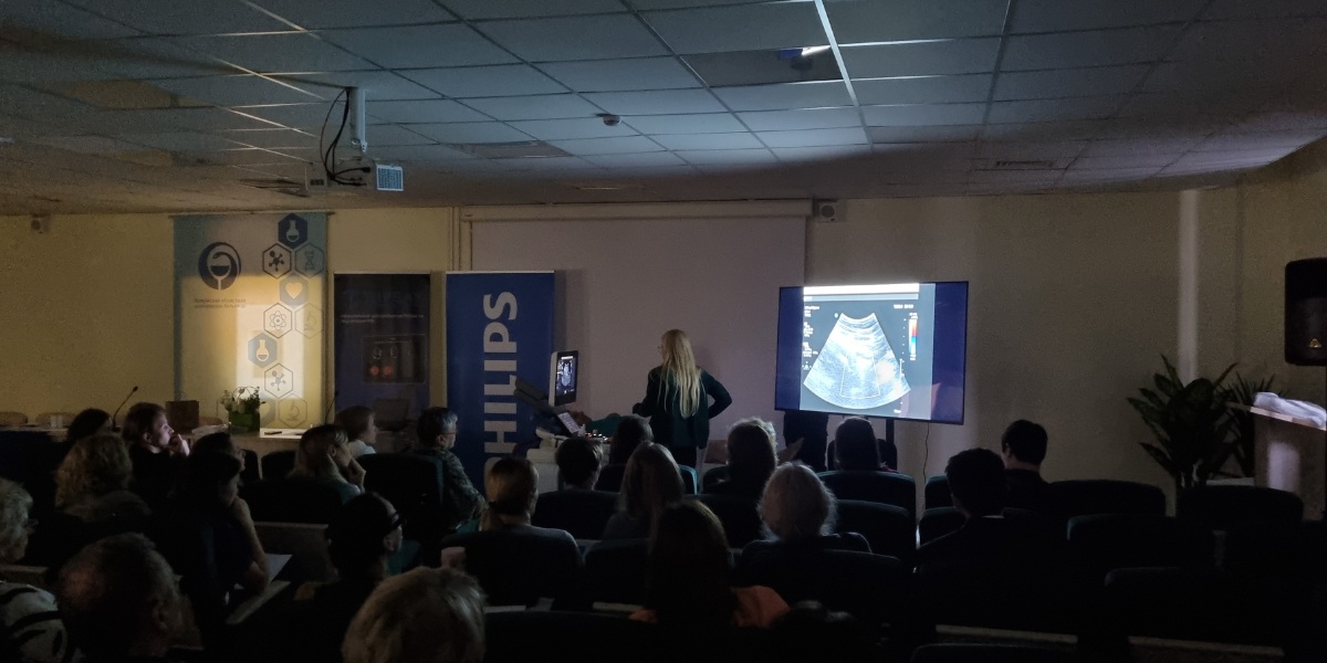 Людмила Эдуардовна Шульгина (д.м.н., заведующая отделением функциональной и ультразвуковой диагностики ФГБУ «Поликлиника №1» УДП РФ, профессор кафедры лучевой диагностики и лучевой терапии ФГБУ ДПО «ЦГМА» УДП РФ) акцентировала внимание на влиянии технологий Philips на точность диагностики и качество лечения. Участники активно задавали вопросы, делясь своим опытом.